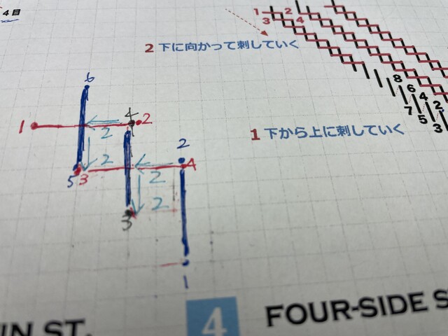 2024年12月05日 【アジュール刺繍】アップライトクロスステッチの法則を見つけた カテゴリ:白糸刺繍 3つ習ってきたうちのひとつアップライトクロスというステッチハーダンガー刺繍でもあった斜めのステッチ苦手です教室で習った時はわかった気になっていたんですが家でやろうとすると意味がわからなくなって自分がわかりやすい図解にしました 2目横行き下に2目間違いないけどもっと簡単なものはないか・・・実際針を刺してみると見えてくるものが シャープが見えますーーー更に口が見えますーこれだ!ひと口 楽勝 「白糸刺繍」カテゴリの最新記事 コメント コメントフォーム 名前 コメント 記事の評価 リセット リセット 顔 星 情報を記憶 コメントを投稿する 【ホクロ・シミ取り】シミとホクロを取ってきました【アジュール刺繍】模様の方向に違和感