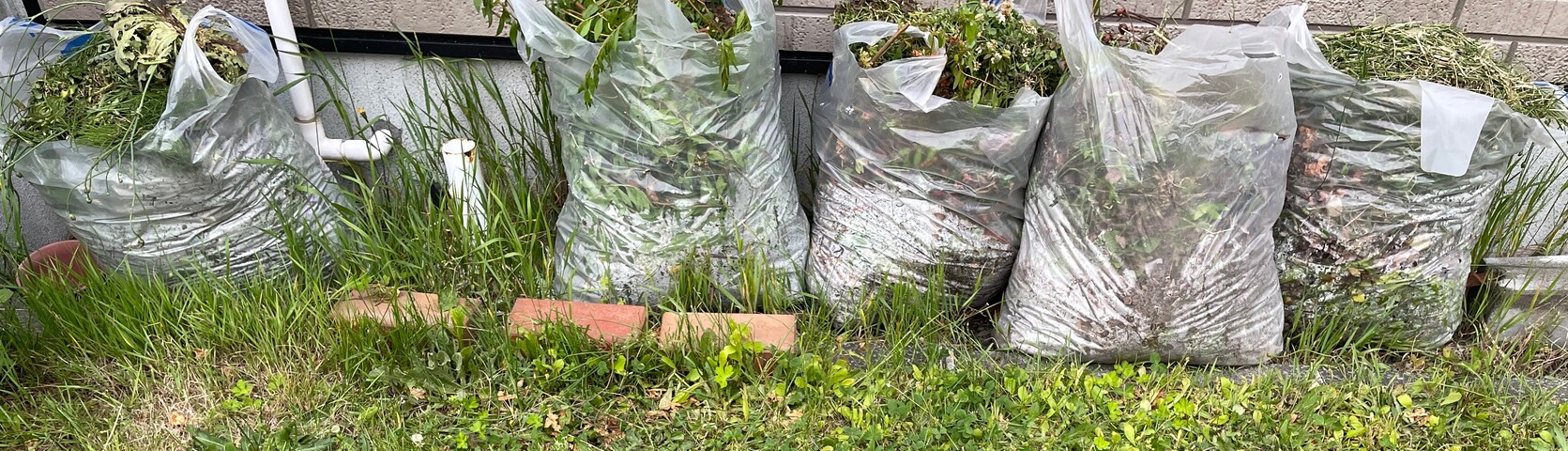 庭の雑草取りは数日にわけてやっていたんですが、